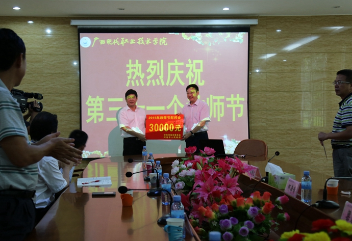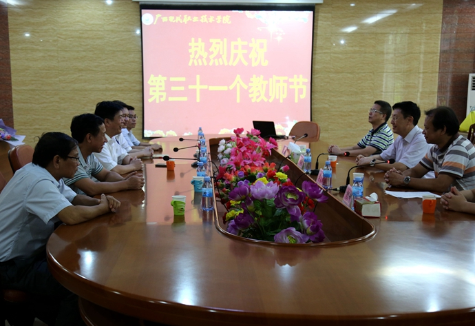 学院党委宣传部讯 在全国第31个教师节即将到来之际,9月6日下午,河池市市长何辛幸代表市委、市政府深入我院亲切看望慰问学院教职员工代表,感谢他们为河池职业教育事业发展作出的重要贡献,并通过他们向全院辛勤耕耘在职业教育战线上的教职员工致以亲切的节日问候与祝福。学院党委书记韦伟松出席教师节座谈会并向何市长汇报学院近几年来学院的发展情况及今年的招生情况。学院党委副书记、院长黄绍光,纪委书记冉景峰,副院长冯忠伟、韦胜东以及相关部门主要负责人参加座谈会。