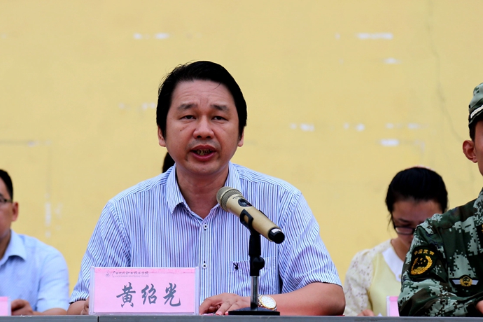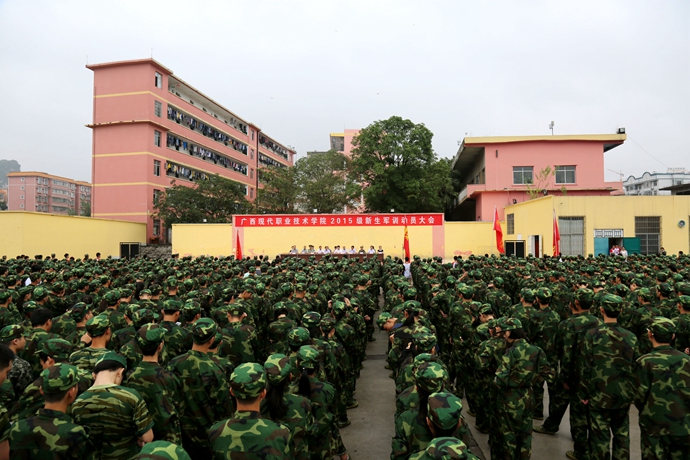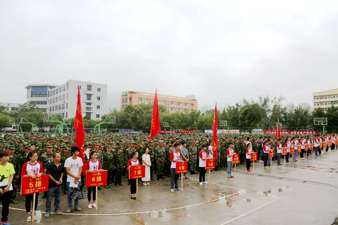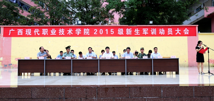 学院党委宣传部讯 9月9日,我院2015级新生军训动员大会在文体广场隆重举行。学院党委书记韦伟松、院长黄绍光出席大会并作重要讲话,纪委书记冉景峰,副院长韦胜东,院长助理杨奎以及各系、各部门主要领导和承训官兵等参加了动员大会。大会由学工处处长李铃主持。