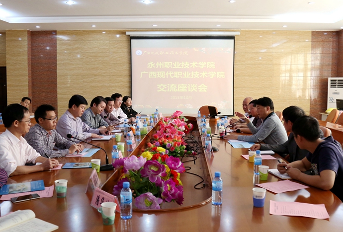 学院党委宣传部讯 10月15日,以党委书记李世胜为团长的永州职业技术学院考察团一行到我院参观考察。学院党委书记韦伟松,院长黄绍光,副院长韦胜东,纪委书记冉景峰以及相关部门负责同志参加了接待活动。
