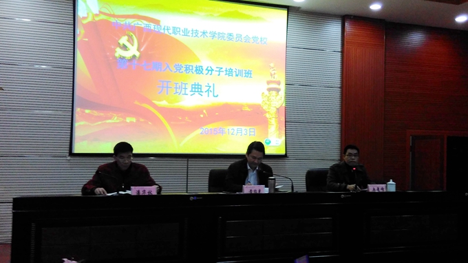 学院党委组织部讯 2015年12月3日晚,学院党委党校第十七期入党积极分子培训班开班典礼在第二学术报告厅隆重举行。学院党委副书记、院长黄绍光出席典礼并作重要讲话。开班典礼由学院纪委书记冉景峰主持。学院党委组织部主要负责同志,各党总支书记、副书记及200多名入党积极分子参加开班典礼。