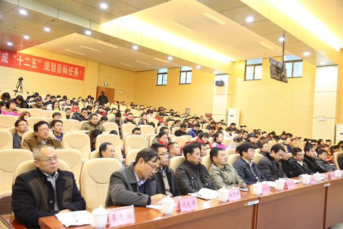 学院党委宣传部讯 1月14日上午,广西师院唐锡海教授应邀到我院讲学。学院党委书记韦伟松,学院院长黄绍光,学院党委副书记、副院长霍江华,纪委书记冉景峰,副院长韦胜东以及学院、市职教中心全体教职工600余人到场聆听报告会。会议由副院长冯忠伟主持。