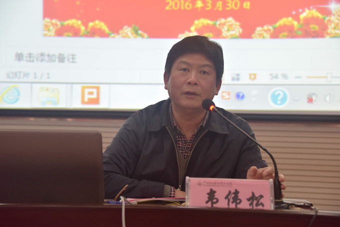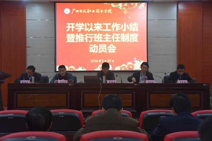 党委宣传部讯 3月30日,我院在第二学术报告厅召开开学以来工作小结暨推行班主任制度动员会。学院党委书记韦伟松、院长黄绍光出席会议并作重要讲话。纪委书记冉景峰、副院长韦胜东及全体教职工参加会议。会议由学院党委副书记霍江华主持。