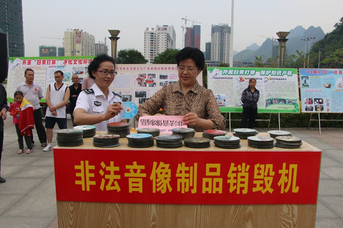 在市人民政府副秘书长潘扬权带领下,我院学生代表有序参加销毁活动,并参观了“扫黄打非”活动板报展,对侵权盗版及非法出版物有了更深刻的认识。