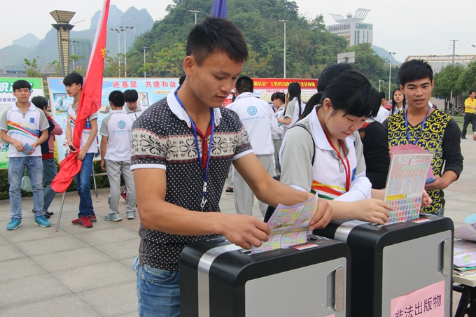 我院学生积极参加河池市2016年“扫黄打非”活动