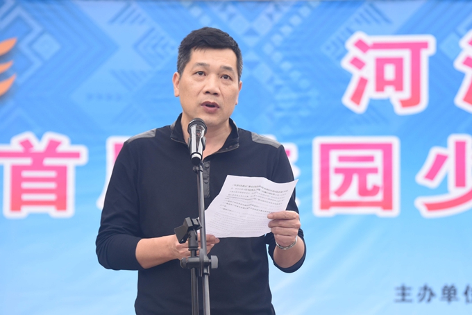 市文化广电新闻出版体育局局长杨卫群在开幕式上作讲话,他表示,此次校园少数民族传统体育运动会的开展,为培养民族传统体育人才,挖掘整理、传承民族传统体育提供了良好的平台。同时,他希望通过此次比赛,让同学们能够体会到民族体育的乐趣,推动我市民族体育的传承与发展。