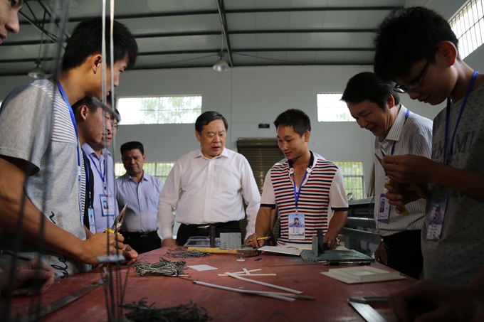 在建筑工程实训室,张秀隆与学生亲切交谈,了解学生学习情况及学习收获,对我院学生自主学习及技术创新能力表示赞赏。当听到我院积极利用校内优势资源开展农民工培训时,张秀隆表示:“这是实实在在的为民办实事”。张秀隆对我院在职业教育发展中取得的显著成就以及优质的办学条件、完善的教学体制予以充分肯定。他希望我院继续发挥服务地方经济的优势,依托高校人才资源,以学科专业建设和发展为抓手服务地方产业,发挥高校人才培养和创新作用,为服务地方经济发展做出新的更大的贡献。