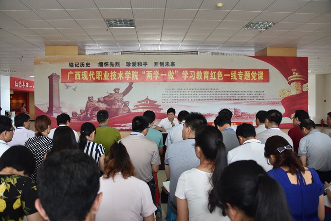 这次“两学一做”学习教育地点与以往不同:学院全体教职工党员在河池革命纪念馆通过直观的方式上党课,在革命先烈前重温入党誓词,立志做一名合格党员。通过参观革命纪念馆,缅怀先烈的丰功伟绩,接受革命传统教育,锤炼党性、砥砺品格,更加坚定为人民服务,立足本职推动学院更好发展的坚定信念。通过将学习教育和弘扬革命精神有机结合起来,我院“两学一做”学习教育取得了实实在在的效果。