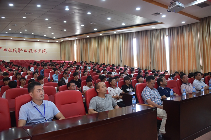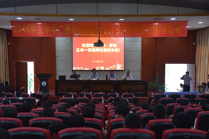 本站讯(宣传部 黄思涵) 6月24日上午,天峨、罗城五年一贯制百余名同学由专业教师带队到我院参观交流并举行座谈会。院长黄绍光,党委副书记、副院长霍江华,纪委书记冉景峰出席了会议。会议由工会主席覃志航主持。