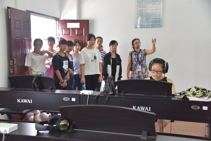 座谈会后,谢玉艳带领天峨、罗城五年一贯制师生实地参观了我院校史馆、学前实训楼、冶金实训室、建筑实训室等地。