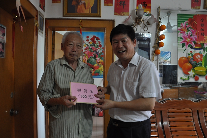 学院领导“七一”看望慰问退休老党员 来源: 发布时间:2016-07-02 17:13:10 浏览次数: 次 【字体:小 大】 学院领导“七一”看望慰问退休老党员 本站讯(宣传部 黄思涵) 为庆祝中国共产党成立95周年,表达对老党员的关心和重视,7月1日建党节,学院党委书记韦伟松,院长黄绍光看望慰问了学院的退休老党员。 在慰问活动中,韦伟松、黄绍光与退休党员亲切交谈,诚挚询问老同志的生活和身体健康状况,同时送上了慰问金。退休老党员对学院一直以来的深切关怀表示衷心感谢。 【打印正文】 相关信息
