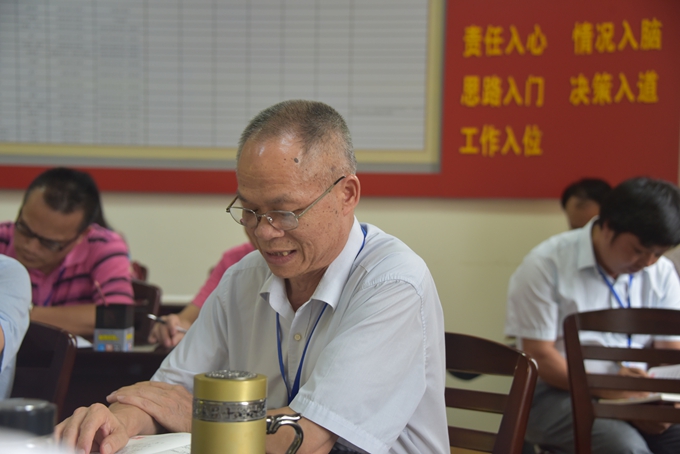 副院长韦胜东、纪委书记冉景峰,覃志航、副院长冯忠伟等分别作了讨论发言。大家从如何深刻领会习近平总书记在庆祝建党95周年大会上的重要讲话精神实质和精髓要义,准确把握“讲政治、有信念”的现实意义和实践要求;如何认识学院的战略定位,围绕职责任务,做好教学、服务、管理工作等内容谈了自己的学习体会。