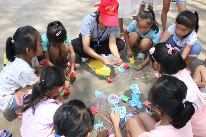 夏日炎炎也阻挡不了志愿者的服务热情,志愿者们组成支教文艺队、义诊队、义务维修队等,尽心尽力为当地群众服务。支教队的志愿者们带着小朋友们一起唱歌跳舞、进行妙趣横生的游戏拓展,为孩子们带去欢乐;在义诊区,来自医疗单位的专家们为群众宣传健康卫生、防艾、急救知识,为当地群众进行免费健康体检;义务维修队的小伙子们忙得热火朝天,为群众提供家电义务维修服务。