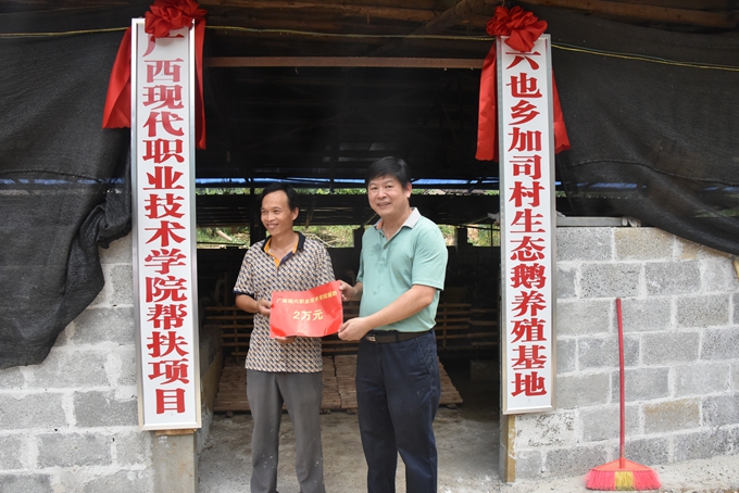 学院领导走访慰问了加司村和华善村的贫困户、老党员,与他们亲切攀谈,详细了解生活情况,并为他们送去慰问金和慰问品。学院党委书记韦伟松、学院院长黄绍光与六也乡领导共同为优米体育入口官网下载手机版农民工培训基地、六也乡加司村生态鹅养殖基地揭牌,并向加司村、华善村两委赠送电脑、打印机、电脑桌等办公用品。