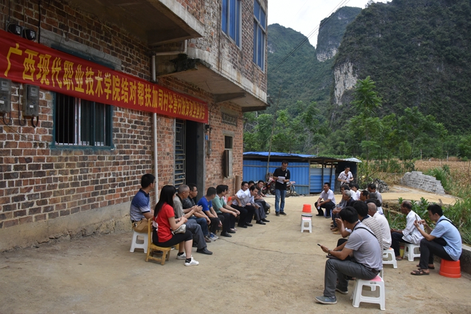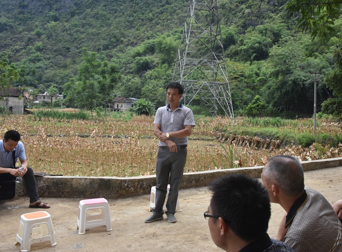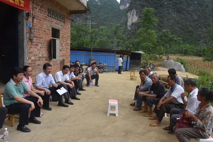 本站讯(宣传部 莫青青) 为贯彻落实精准扶贫工作的有关要求,按照学院驻村工作组的计划安排,7月21日,学院党委书记韦伟松、学院院长黄绍光、学院党委副书记、副院长霍江华、纪委书记冉景峰及院办、组织人事处、培训部、贯通办等有关同志到我院扶贫联系点——大化瑶族自治县六也乡加司村、华善村开展调研帮扶活动。
