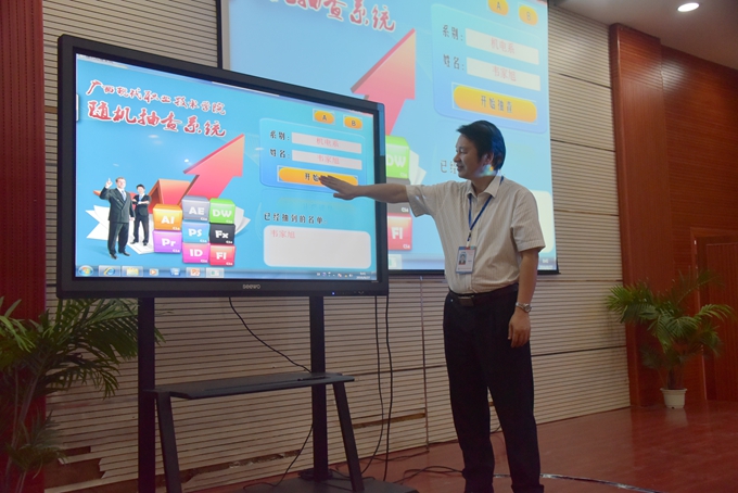 本站讯(宣传部 莫青青) 8月27日,我院在第二学术报告厅举行第五届教师信息化技术应用能力竞赛决赛。比赛邀请了河池学院计信学院副院长罗日才、现代教育技术中心教师谭可久、宋文军、云善明及河池职教中心信息中心教师等作为比赛评委。学院院长黄绍光、学院党委副书记、副院长霍江华、副院长韦胜东、纪委书记冉景峰、副院长冯忠伟出席比赛。全体教职工到场观摩比赛。
