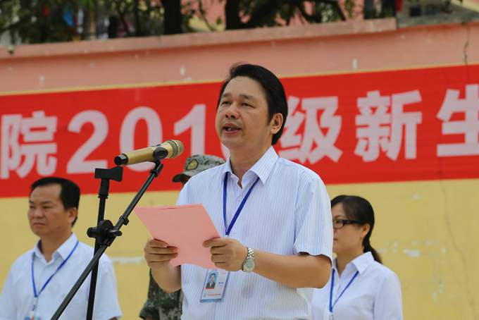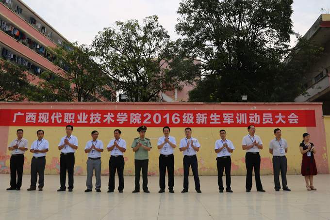 本站讯(宣传部 莫青青) 9月8日,我院2016级新生军训动员大会在学院文体广场隆重举行。学院院长黄绍光、党委副书记、副院长霍江华、副院长韦胜东、纪委书记冉景峰、副院长冯忠伟出席动员大会。各系、各部门主要领导和河池市金城江区消防大队领导覃业扬、承训部队领队胡迪慷、承训官兵及2016级3000多名新生参加动员大会。大会由学工处处长李铃主持。