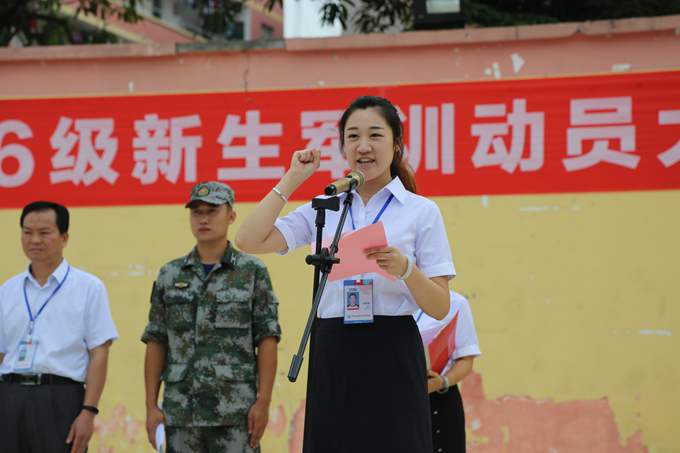 上午8时30分,大会在庄严的国歌声中开始。党委副书记、副院长霍江华解读了2016年新生军训工作方案。承训教官代表杨再友代表全体教官衷心祝愿2016级学生通过军训。参训学生代表机电工程系2016级汽修专业张友硕同学表示,将在军训过程中克服困难,努力拼搏,以实际行动交上一份令人满意的答卷。2016级新生班主任代表李奕莹老师代表全体班主任进行宣誓。