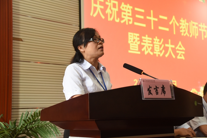 会上,优秀教师容隶莹、教学标兵吴春燕、先进教育工作者李铃作典型发言。