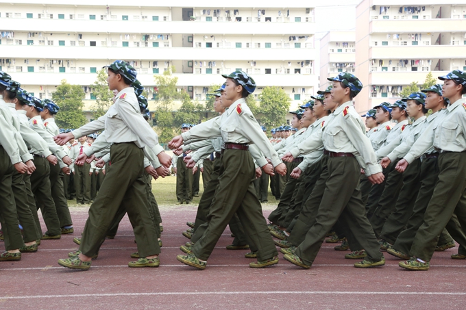 上午8时,汇演正式开始。在庄重的升国旗唱国歌仪式后,承训主教官胡迪慷整理队伍并向总指挥韦伟松书记汇报学生集合情况,韦伟松书记宣布学院2016级新生军训汇报表演正式开始。随后,韦伟松书记和承训教官检阅2016级受训新生。韦伟松书记向参加汇演的全体军训学生发出了亲切慰问,各方队学生报以响亮的口号予以回应。之后,伴着嘹亮的阅兵曲,分列式汇演开始。各方队迈着整齐划一、铿锵有力的步伐,意气风发地依次通过主席台,他们以昂扬的精神、崭新的面貌向学院领导、部队官兵和老师们汇报了两周艰苦训练所取得的丰硕成果,赢得了在场领导和师生们的热烈掌声。