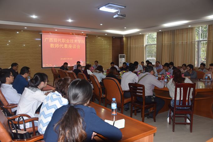 为了解广大师生对学院各方面工作的意见和建议,推进教育教学管理与改革工作,提高师生满意度,11月15日至11月18日,我院分别在学院本部和西校区召开4次师生座谈会。学院院长黄绍光、党委副书记、副院长霍江华、副院长韦胜东、副院长冯忠伟出席座谈会。各系、各部门负责人及师生代表参加座谈会。