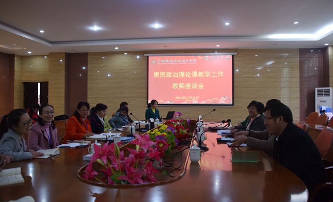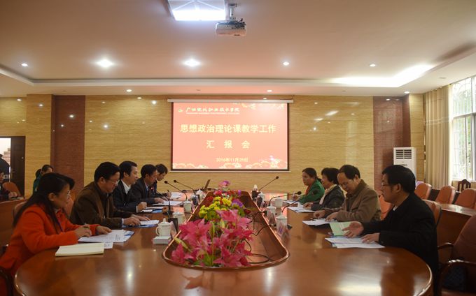 在汇报会上,巡视组组长陈雪斌强调了此次高校思想政治理论课教学巡视工作的目的和意义。院长黄绍光介绍了我院的办学情况、办学特色、办学成果以及发展情况等。副院长韦胜东详细汇报了我院思想政治理论课教育教学的主要经验、教师队伍建设、课程建设、教学改革、科研建设和主要特色。