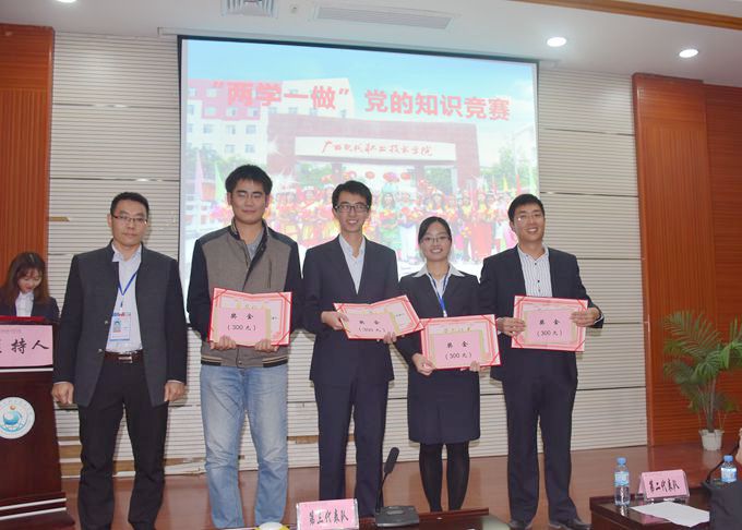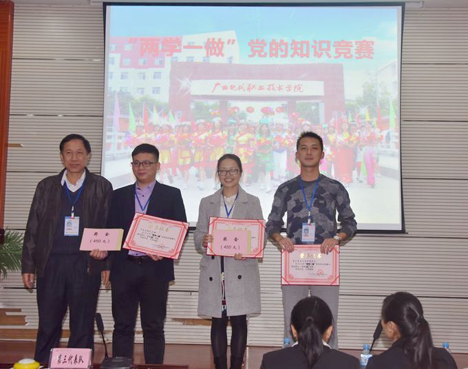 经过激烈角逐,资源工程系党总支代表队凭借在比赛中的从容不迫、反应敏捷,于高手如林的比赛现场脱颖而出,荣获一等奖;行政后勤党总支、教务学工党总支、电子电力工程系党总支代表队荣获二等奖;机电工程系党总支、经济管理系党总支、教育系党总支、建筑与信息工程系党总支代表队荣获三等奖。最后,学院党委副书记、副院长霍江华、副院长韦胜东、纪委书记冉景峰为获奖代表队选手颁奖。