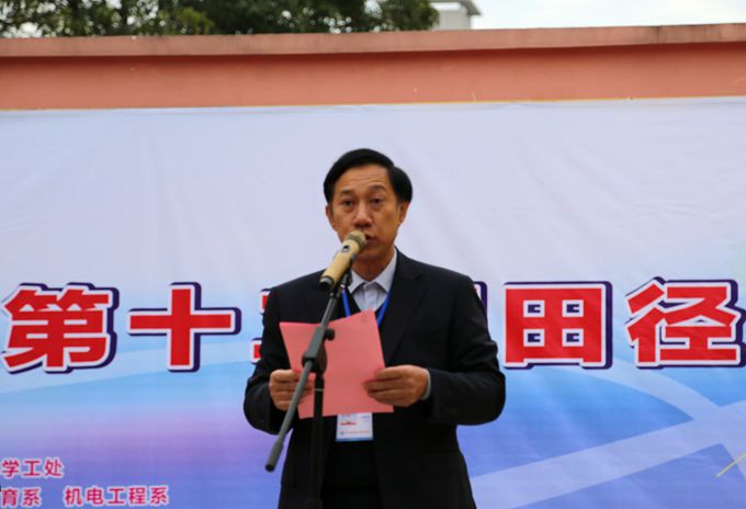 在庄严的奏唱国歌仪式结束后,学院党委副书记、副院长霍江华为开幕式致辞。他表示,举办这次田径运动会,既是学院着力推进“校园文化建设工程”、“学生德育工程”的重要举措之一,也是对我院体育工作的一次综合检查,更是对同学们身体素质、运动技能的考验。他希望全体运动员尽情体验竞赛的魅力,在比赛中赛出水平,赛出风格,取得体育成绩和精神文明的“双丰收”。