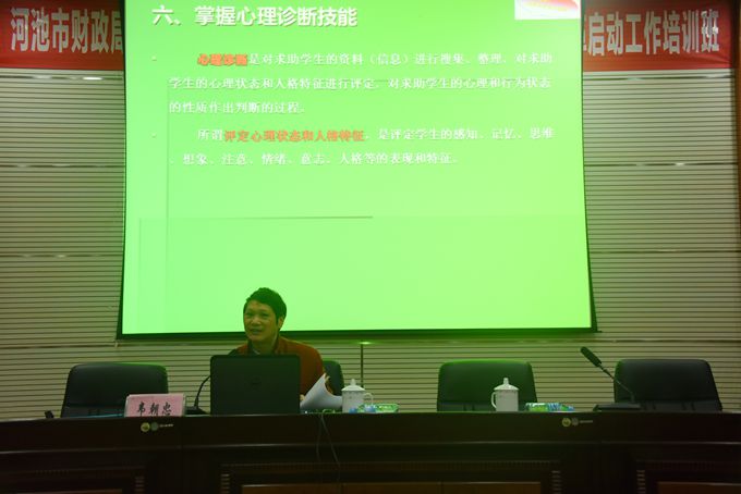 当天的开班典礼结束后,学院社会科学部主任韦朝忠为全体班主任作了题为《开展学生心理辅导的常用方法》的培训。