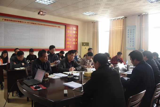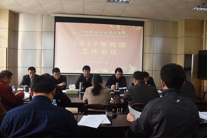 2月17日,我院在第一行政办公楼五楼会议室召开2017年党建工作会议。学院党委书记韦伟松,院长黄绍光,党委副书记、副院长霍江华,副院长韦胜东,纪委书记冉景峰,各党总支书记、各党支部书记、组织部全体成员参加会议。