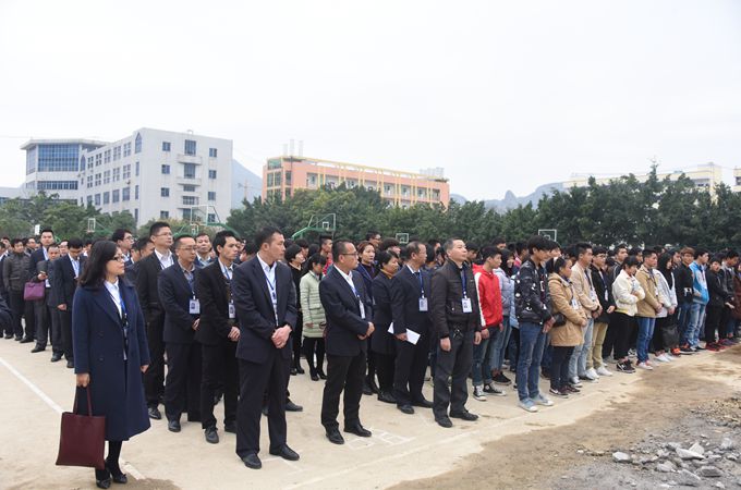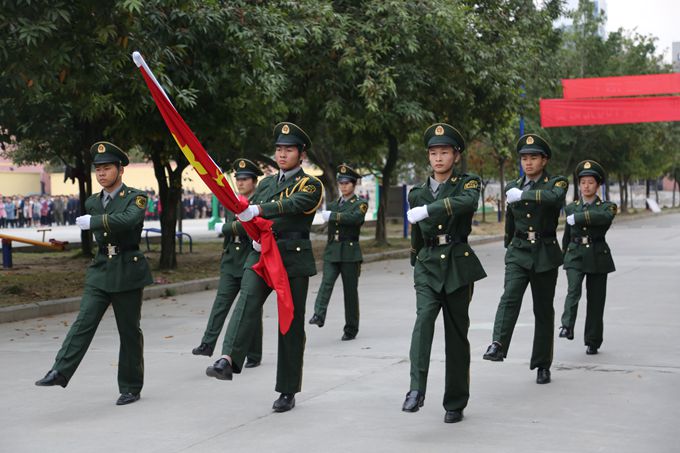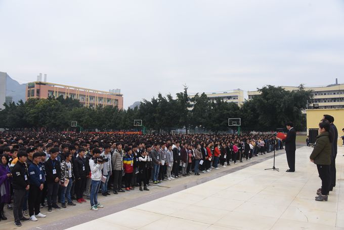 在庄严嘹亮的国歌声中,五星红旗冉冉升起,全体师生注目肃立,现场气氛严肃而庄重。