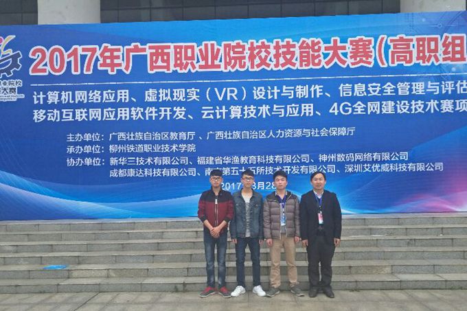 3月28日,2017年广西职业院校技能大赛(高职组)在柳州铁道职业技术学院率先拉开序幕。由我院温志勇、苏敏老师指导,建信系学生卢仕佳、陈柯锦、巫殿向组成的代表队,凭借扎实的功底、精湛的技能以及团队协作能力,从全区21所职业院校参赛队伍中脱颖而出,荣获“计算机网络应用”项目一等奖,为学院赢得了荣誉,并将代表广西参加全国大赛!