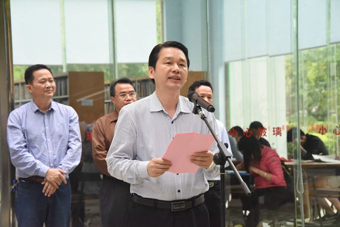 在第23个世界读书日即将来临之际,4月18日,我院在图书馆北门举行了24小时图书馆开馆暨学院2017年读书活动月启动仪式。中共河池市委宣传部副部长李卫珍、学院院长黄绍光、市社会科学界联合会主席周龙、市文化广电新闻出版体育局副局长刘良钦、市委老干部局副局长俞莺、市民族图书馆馆长谭荣玲出席仪式。学院师生代表参加仪式。仪式由学院图书馆馆长黄秀德主持。