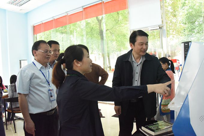 仪式结束后,出席开馆暨读书活动月启动仪式的领导和嘉宾参观了24小时图书馆并现场体验。