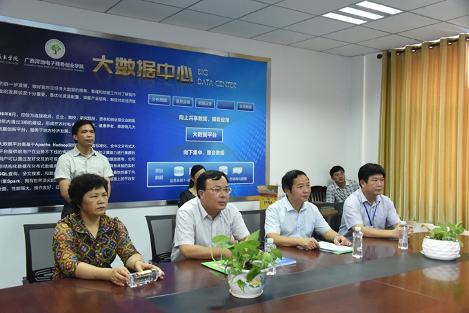 在调研中,学院党委书记韦伟松就学院“党建+教育扶贫”和电商扶贫的基本情况向唐标文副书记作了详细汇报。唐标文充分肯定了我院在“党建+教育扶贫”和电商扶贫中取得的成绩,认为我院通过“党建+教育扶贫”模式,大力开展职业技能培训,增强贫困群众脱贫能力,服务社会经济发展能力进一步加强。唐标文指出,“党建+教育扶贫”模式,有效破解了农村基层党组织在促进经济发展和脱贫攻坚工作中面临的人财物等各种问题,值得各地学习与推广,各级各相关部门要及时总结经验,树立典型,加大宣传力度,营造良好的舆论氛围,顺利完成今年全市脱贫攻坚目标任务。唐标文强调,学院要继续以助力河池脱贫攻坚为主导,强化目标导向,引进培训力量,加大培训力度,创新培训方式,不断提升学院的社会竞争能力和服务地方经济社会发展的水平。