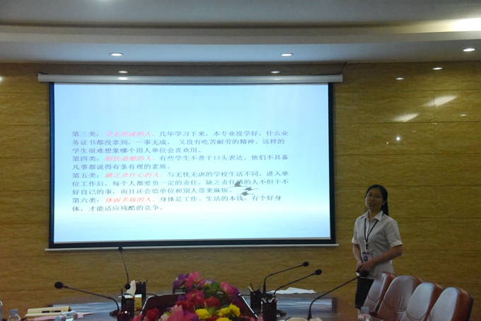 本次现场展示会上,各个系部选出的班主任自拟主题,依次向大家展示了本系主题班会信息化课件制作的成果。展示教师在播放课件的同时,对展示的作品进行了详细说明。《毕业你准备好了没》针对毕业生遇到的问题展开了讨论;《遵守交通安全 守护生命之花》以校园交通安全为主题,让学生懂得遵守规则,尊重生命;《感恩父母》为大家带来一场感人肺腑的“心灵盛宴”……丰富的班会内容,精心制作的多媒体课件,通过视频展播、学生表演、师生互动等形式,让学生在班会课上获得知识的同时,也升华了情感。