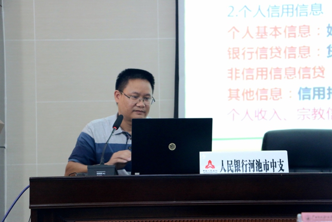 本次活动分两个环节,首先是在学院第一学术报告厅开展了金融知识进校园讲座,我院组织了相关专业近300学生参加讲座,人民银行河池市中支征信管理科韦愈科长就个人信用和国家助学贷款政策等内容进行了详细的讲解,建设银行韦金玲女士就建行“悦”生活,建行龙支付和建行分期通等新的便民产品进行了详细的解读。