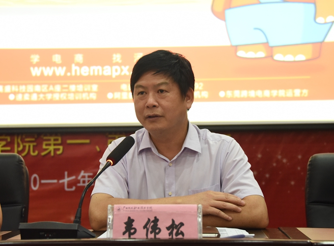 学院党委书记韦伟松在会上讲话。韦伟松对此次培训的教学水平、学习过程和考核效果给予高度评价,并指出,全体讲师团成员要坚信付出总会有收获,要保持激情,明确目标,坚持学以致用,力求体现培训实效。要在电商发展的大趋势下,积极主动,勇于担当,围绕服务地方经济发展贡献力量。