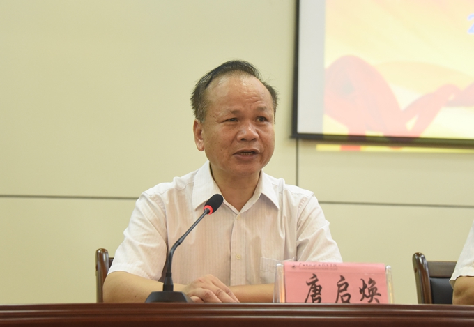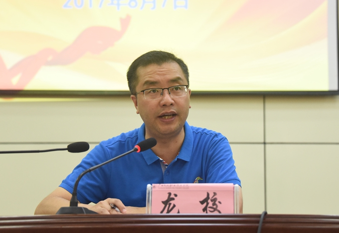 宜州区委副书记龙校在会上讲话。龙校指出,此次培训覆盖面广、内容丰富,重点突出,针对性强,体现了师资水平高,培训内容精,课程安排好,教学要求严,学习风气浓的特点。经过培训,学员们拓宽了思路、明确了方向;掌握了知识、提高了素质;促进了交流,增强了合力。希望全体学员充分认识“党建+教育扶贫”的重要意义,争做好政策的宣传者;要尽快找到适合的就业岗位,开始事业的新起点;要在实践中提升技能,争做脱贫致富的带头人。
