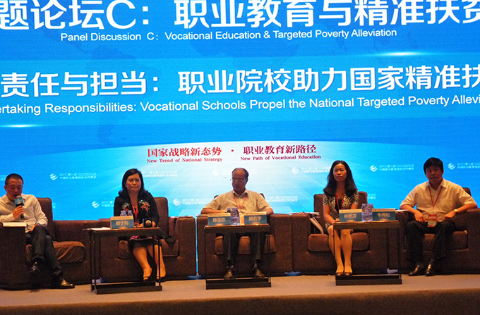 在13日下午举行的“责任与担当:职业院校助力国家精准扶贫”专题论坛上,韦伟松书记与来自东部、中部的高校领导、职教专家就在国家精准扶贫战略下,职业院校应该承担什么样的使命与责任;如何进行改革和创新,有效支持和配合当地的扶贫工作等问题进行深入的探讨。韦伟松书记因拥有丰富的地方工作经验及曾任市委副秘书长的背景,发言备受瞩目。与会专家认为韦书记对职业院校如何服务地方的见解独到,很受启发。