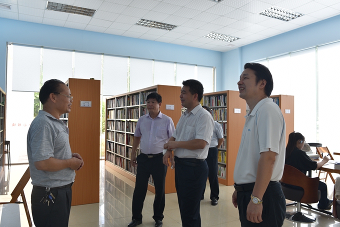 李建设一行先后参观了电商学院、学前实训室、马上办服务中心、新建宿舍楼、工业机器人实训室、24小时图书馆、驾校等地。调研中,韦伟松书记向李建设一行详细汇报了学院的办学情况、特色专业及人才培养等。同时,韦伟松书记希望市委市政府就学院发展过程中存在的问题和困难给帮助解决。