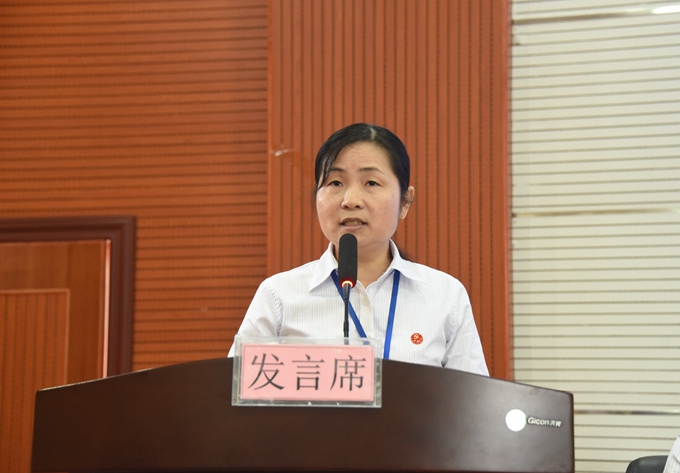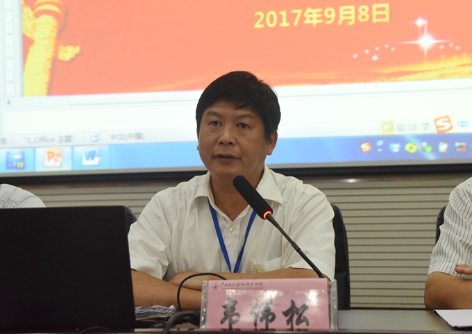 学院党委书记韦伟松在会上讲话。韦伟松充分肯定了我院教育工作所取得的优异成绩,并指出,过去一年中,全体教职工荣辱与共、共同担当,为学院发展贡献力量,学院办学实力得到较大提升,招生工作有新突破,服务地方经济取得新成效,专业建设、特色办学、电商培训等工作得到各级领导的充分肯定和高度评价,正是因为有了这样一支优秀的教师队伍,才有了学院的不断发展壮大。韦伟松还通过PPT为全体教职工展示并讲解了在“互联网+”影响下社会生活智能化的生动实例,并强调,在“互联网+”和智能制造融合发展的大环境下,全体教职工要做到“三思”:要“思变”,要把师德师风建设和育人教书作为工作的重中之重,增强紧迫感和危机感,以不变应万变,以适应社会发展;要“思进”,要增强育人能力,培养学生的学习创新能力,提高教授知识技能的能力,不断追求进步;要“思发展”,思想要高度统一,要以最好的工作状态、最好的工作作风,做到高度团结、高度齐心,把各项工作做到极致。全体教职工要凝心聚力,保持好状态,开拓创新,勇争一流,为学院跨越式发展作出积极贡献。
