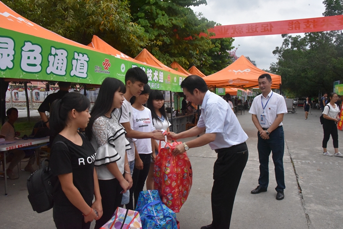 院长黄绍光为新生发放爱心助学大礼包