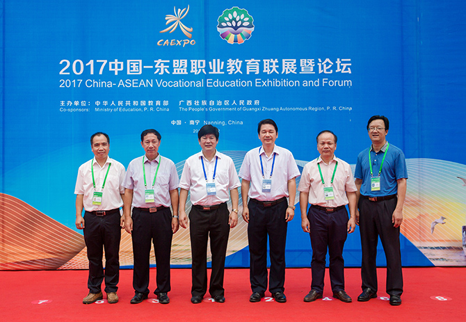 同日,2017中国—东盟职业教育联展暨高峰论坛也在南宁•中关村创新示范基地开幕,我院党委书记韦伟松、院长黄绍光参加了本次盛会。