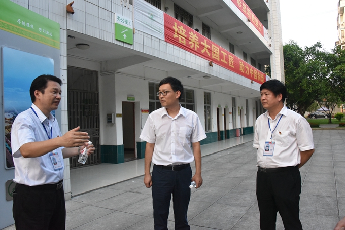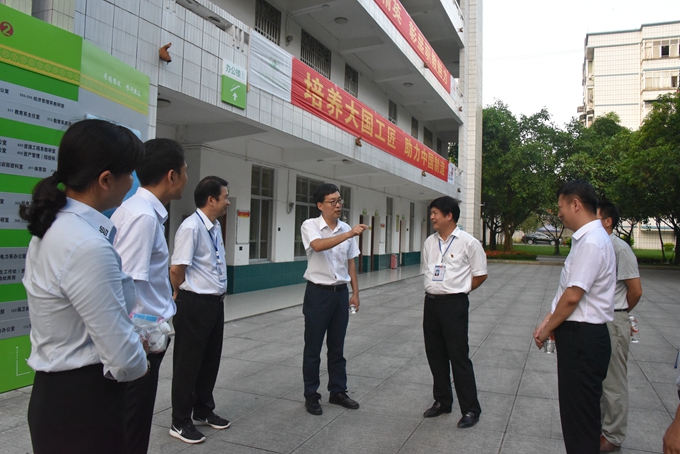 胡乐信一行先后参观了电商学院、第一实训楼、工业机器人实训室等地。考察中,学院院长黄绍光代表学院感谢中国联通长期以来对学院各项事业发展提供的帮助,并为胡乐信一行人介绍了学院近年的发展及人才培养情况。