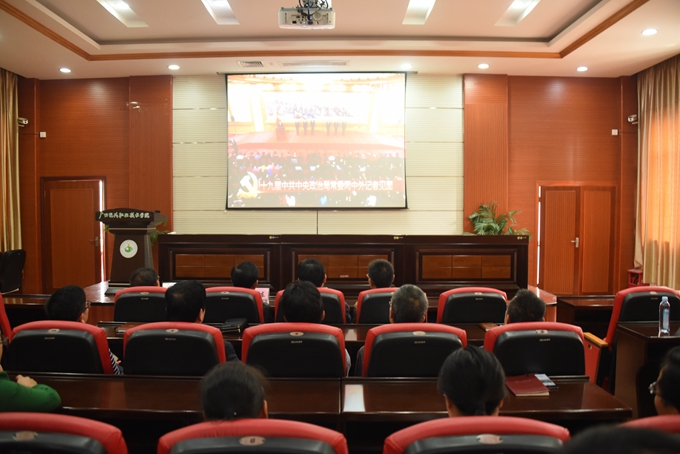 10月24日,中国共产党第十九次全国代表大会在人民大会堂胜利闭幕。10月25日上午11时45分,在中共十九届一中全会上当选的中共中央总书记习近平和中央政治局常委李克强、栗战书、汪洋、王沪宁、赵乐际、韩正在北京人民大会堂同中外记者见面。我院组织师生在第二学术报告厅收看见面会直播实况。学院领导出席收看。近300名师生代表集中收看。