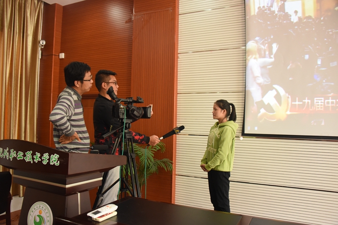 在收看见面会直播结束后,我院教育系16级学前教育专业学生叶凡、黄丽娟分别接受了河池电视台记者采访,两位同学在采访中均表示:新一届中央领导集体正式亮相,感到内心激动澎湃。党的十九大报告提出“青年兴则国家兴,青年强则国家强”,作为大学生和院学生会干部,更要牢记使命,不忘初心,把专业技能学精学实,带头做有担当有责任有知识的青年,在学生群体中真正起先锋模范作用,时刻以最好的学习状态回报社会,报效祖国。