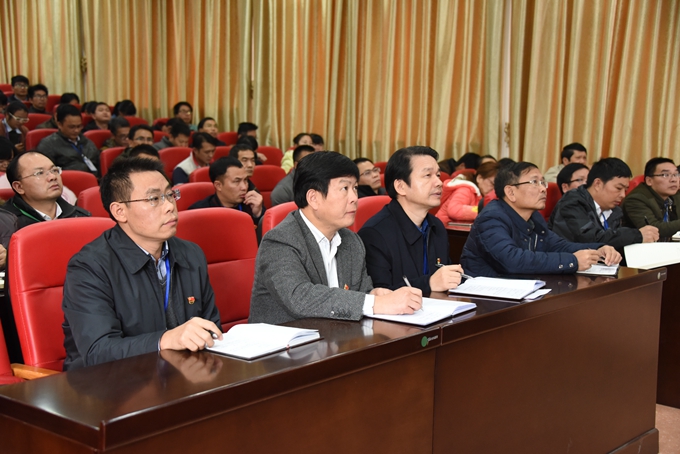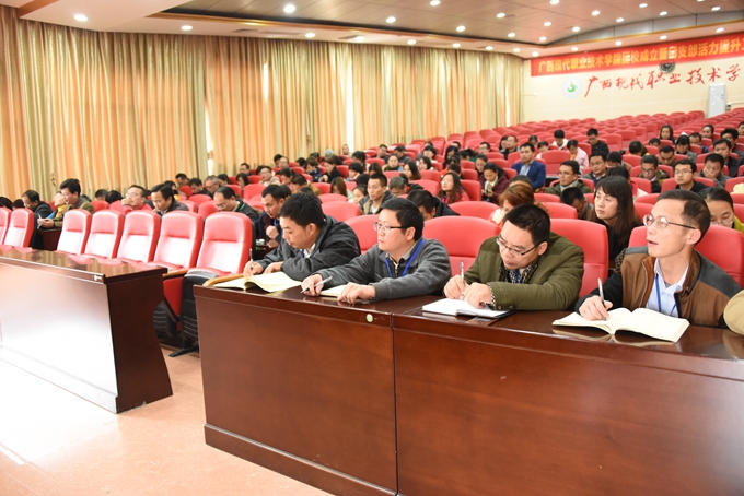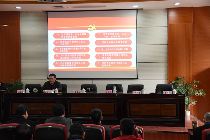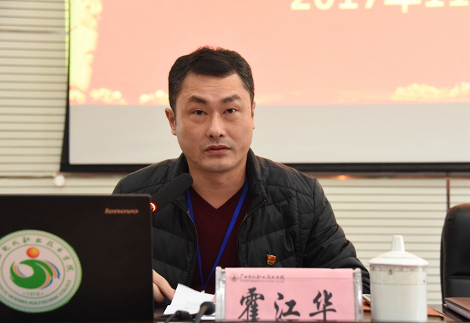 学院党委副书记、副院长霍江华在会上传达学习党的十九大精神,以及桂党高工〔2017〕11号《关于全区教育系统认真学习宣传贯彻党的十九大精神的通知》文件精神。