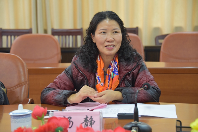 南宁职业教育中心副主任杨静介绍本次调研活动的目的,主要是对我区社区教育的发展及现状进行调查研究,希望各个院校及相关部门分享自己开展社区教育的工作经验。