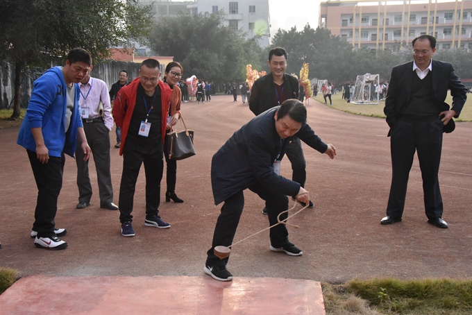 学院院长黄绍光对各个项目分别进行检查指导,并亲自体验打陀螺、勤泽格拉等民族文化项目。黄绍光在民族文化进校园活动现场推进会中讲到,民族文化进校园是我院强推的项目。十九大报告中提出文化是民族的根,文化兴则国运兴,同学们作为当代大学生,肩负着传承民族文化的重任。我们将进行各个项目的比赛,通过竞技来以赛促练,加强同学们的学习兴趣,提高技能。希望同学们都能拥有一个充实、健康的大学生活。