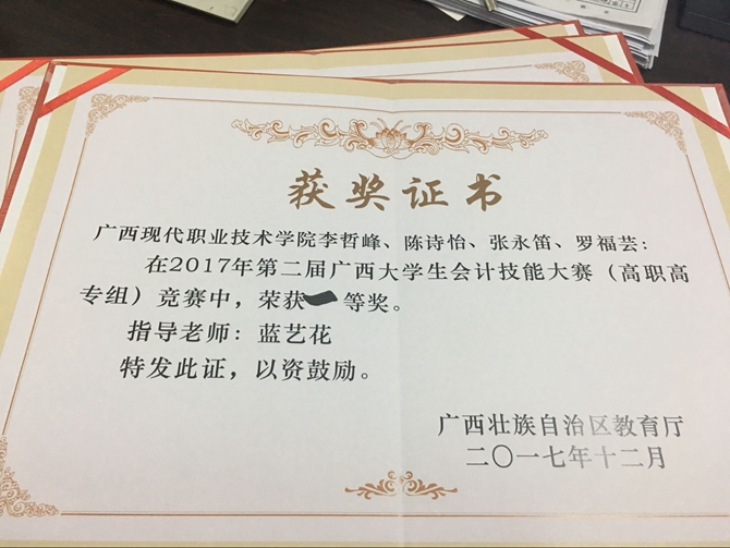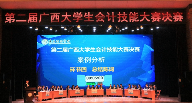 12月23日上午,第二届广西大学生会计技能大赛决赛在广西财经学院明秀校区一号礼堂、一号行政楼15楼会议室举行,我院荣获高职高专组一等奖(第一名)。